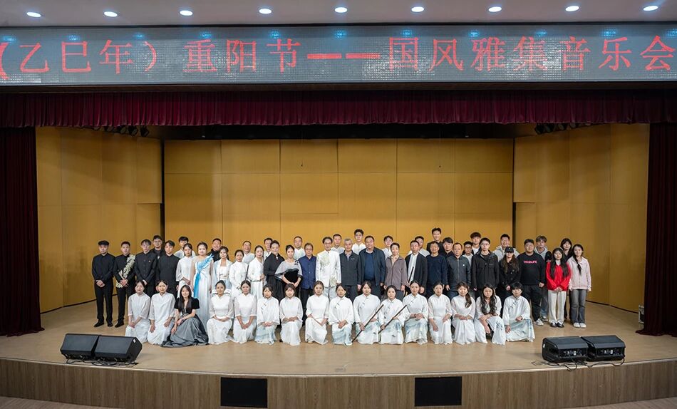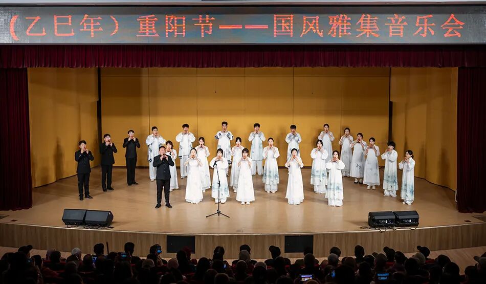 10月26日下午,音乐舞蹈学院联合离退休教职工服务中心、校工会、天和之声琴萧会馆以“岁岁重阳,登高思贤”为主题,在学校音乐厅举办“(乙巳年)重阳节——国风雅集音乐会”,与离退休教职工们共赏国乐风华。