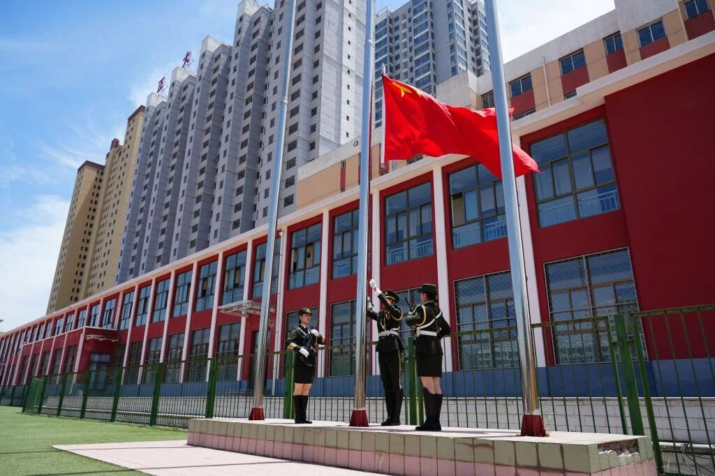 研学师生列队整齐、目光坚定,鲜艳的五星红旗在雄壮激昂的国歌声中冉冉升起,研学活动就此拉开帷幕。