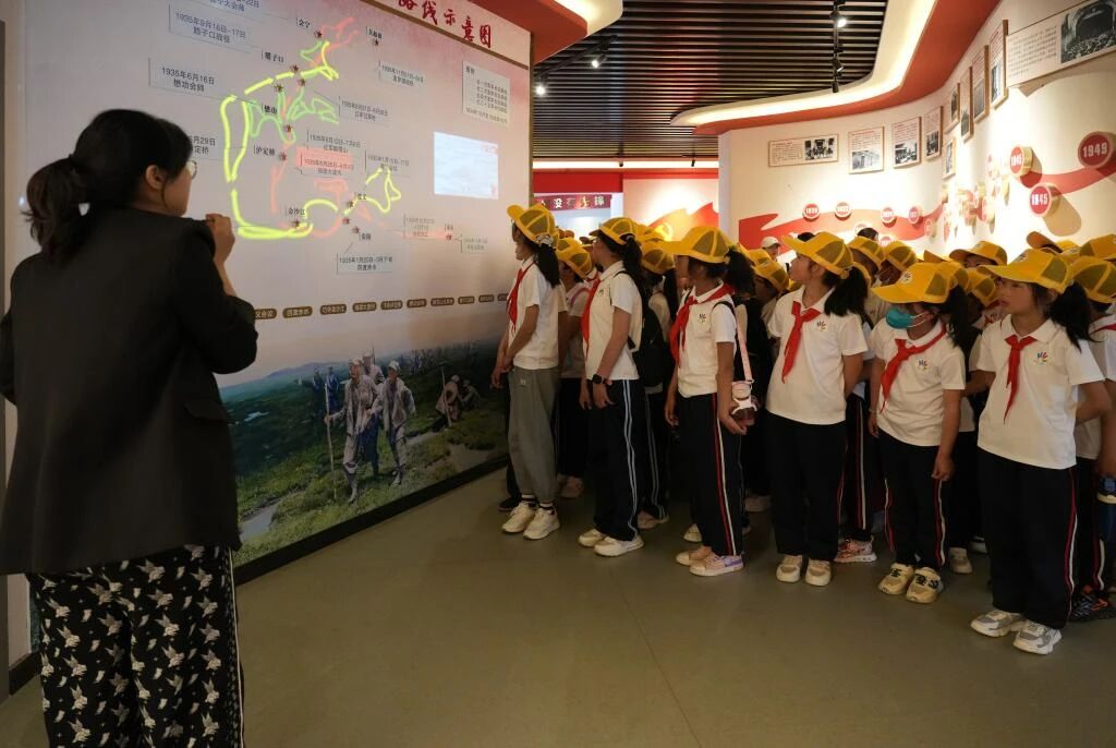 在红色文化教育体验馆,讲解员从“担负救国重任”讲解到“铸就千秋伟业”,同学们认真观看、仔细聆听,感受老一辈无产阶级革命家理想坚定、对党忠诚、百折不挠、无私无畏的革命精神。通过学习,他们深刻认识到今天的幸福生活是革命先辈用生命和鲜血换来的,更加坚定了他们听党话跟党走、做新时代好队员的理想信念。