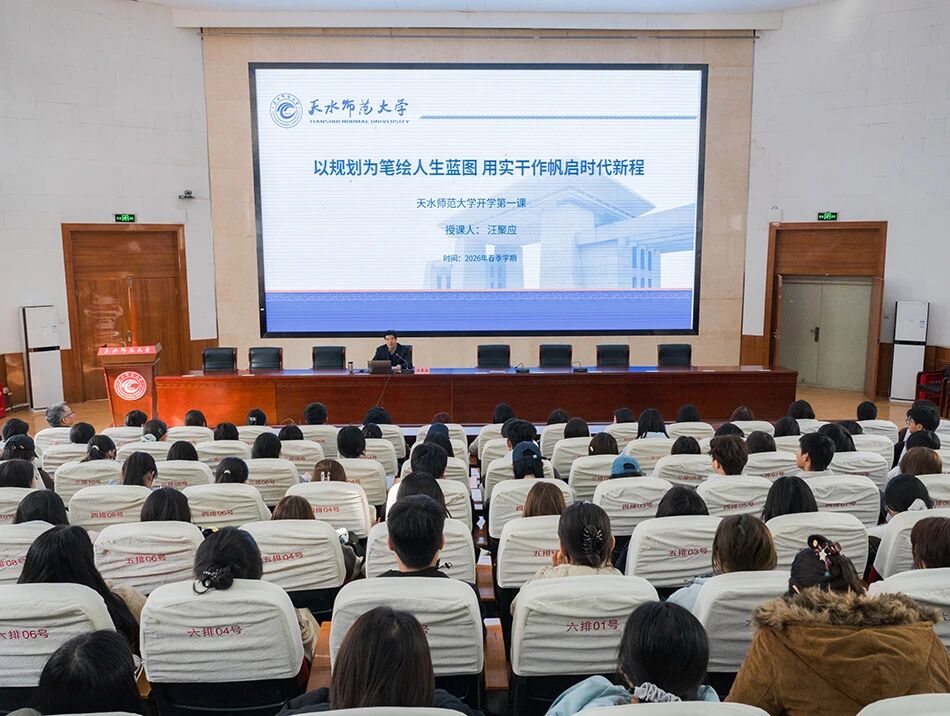 3月17日,学校在二号报告厅举行“天水师范大学开学第一课”。校长汪聚应担任主讲人,招生就业处处长王跟田主持活动,各学院辅导员、大一新生代表等共300余人参加活动。