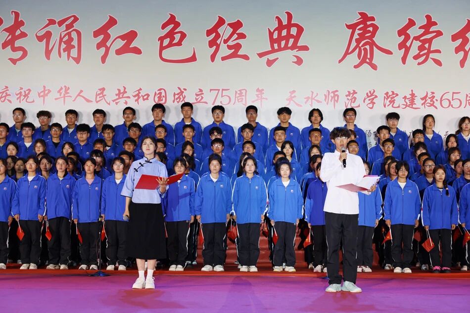 学校举办“传诵红色经典 赓续红色血脉”庆祝中华人民共和国成立75周年、天水师范学院建校65周年经典诗文诵读大赛