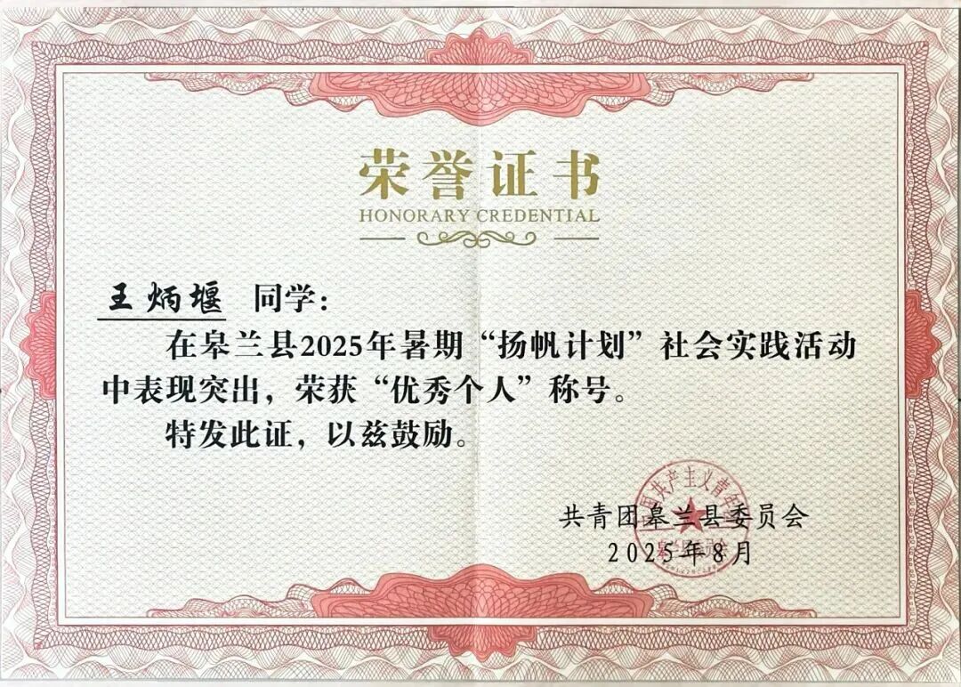 共青团皋兰县委员会在感谢信中高度评价了我校土木工程学院2023级工程造价一班的王炳堰同学。在参与“扬帆计划”实习及DS自然探索赛志愿服务期间,王炳堰同学主动投身社会服务,勇于担当,积极践行社会主义核心价值观,充分体现了我校“实践育人”的教育理念。他在地方发展工作中表现出色,参与统筹组织、信息统计与活动策划等环节,展现了扎实的工作能力与高效的执行力。同时,他还积极组建并带领50余人的志愿者团队,助力赛事顺利开展,并服务三支高校团队,推动乡村振兴成果的传播和实践。