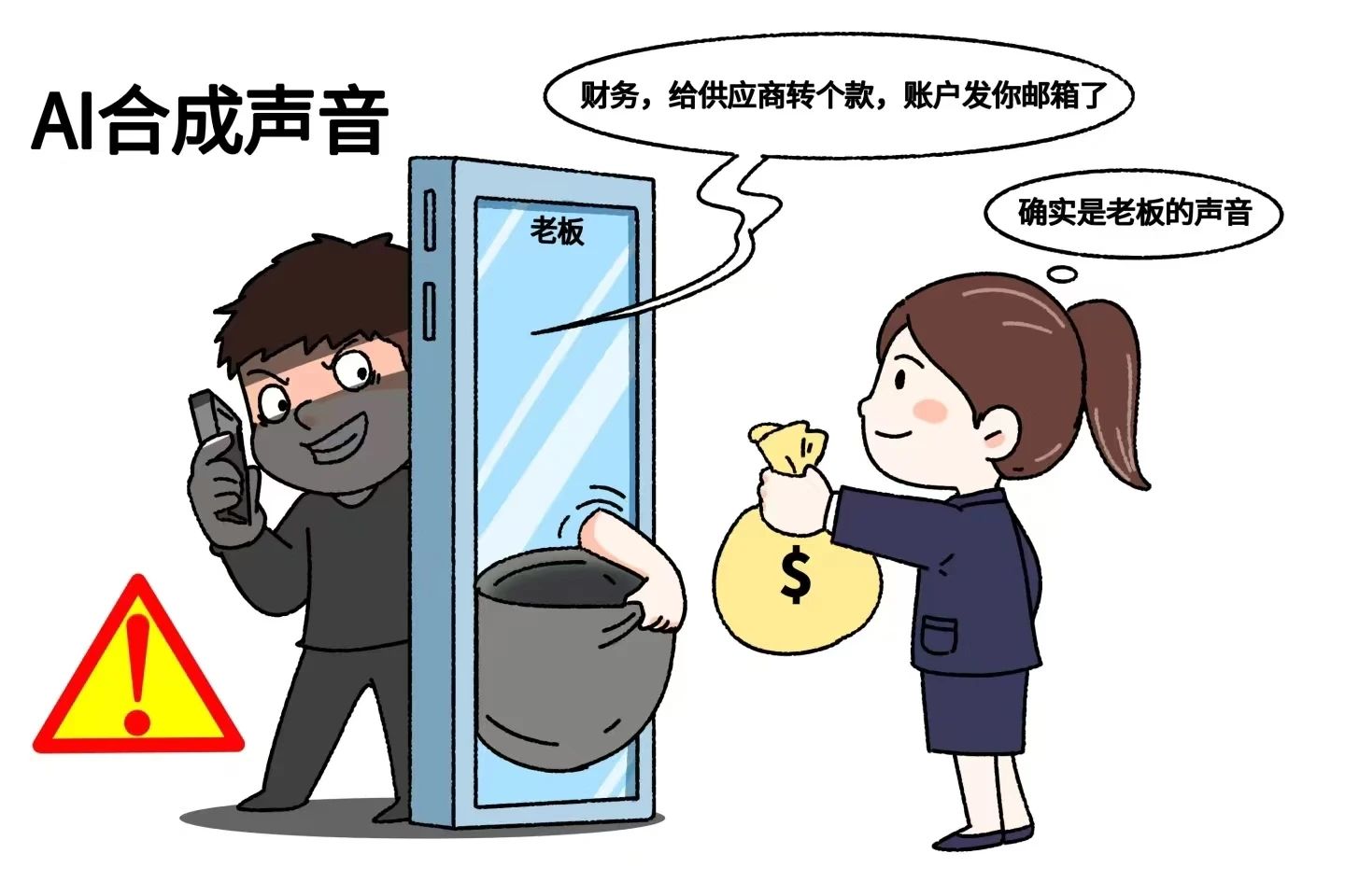 “AI合成声音”诈骗需严防,接到领导要求转账的电话,务必通过其他已知联系方式核实,切勿仅凭声音转账。
