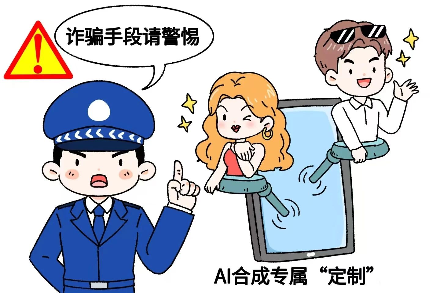 “AI合成专属‘定制’”需警惕,网络上过度完美的形象和信息可能是诈骗手段,要提高辨别能力。