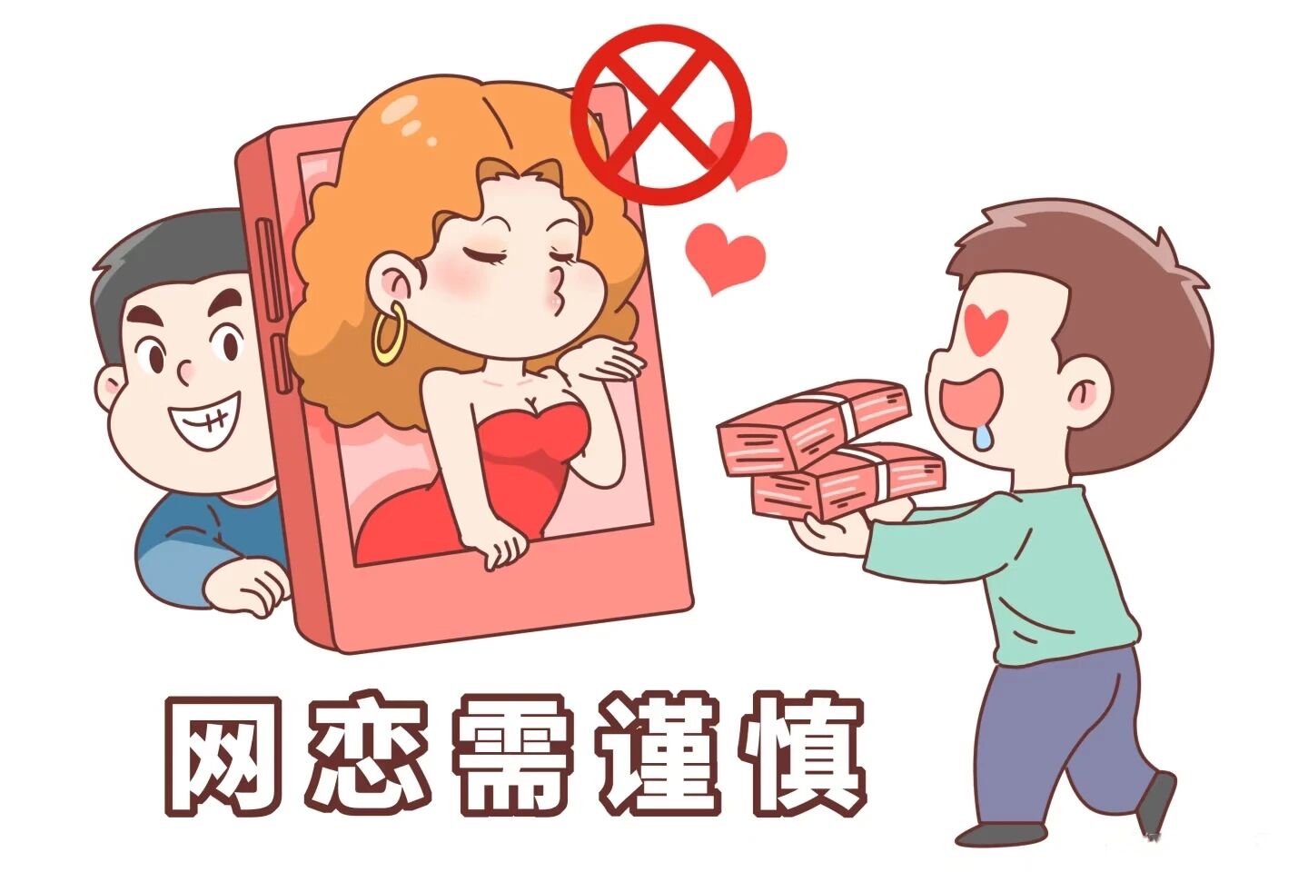 “网恋需谨慎”,面对网络上的诱惑,切勿轻易给对方转账,避免陷入“杀猪盘”等诈骗陷阱。